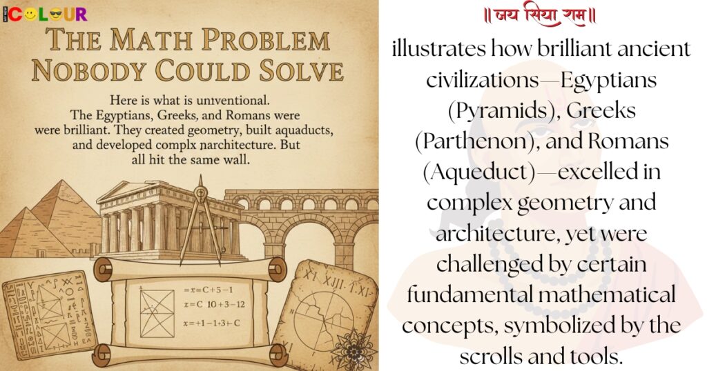 Here is what is unconventional. The Egyptians, Greeks, and Romans were brilliant. They created geometry, built aqueducts, and developed complex architecture. But they all hit the same wall.