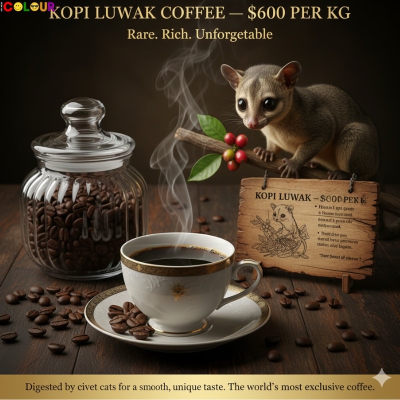 Kopi Luwak is one of the most expensive coffees in the world. It is made using coffee beans that have been eaten and passed through a civet cat. The digestion process changes the flavour and removes bitterness.
