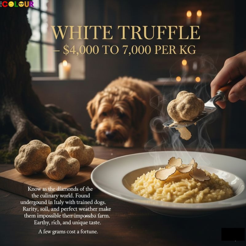 White truffles are known as the diamonds of the culinary world. They grow underground in Italy and can be found only with the help of trained dogs. Truffles are rare because they cannot be farmed easily. They depend on perfect weather, soil, and the right trees.